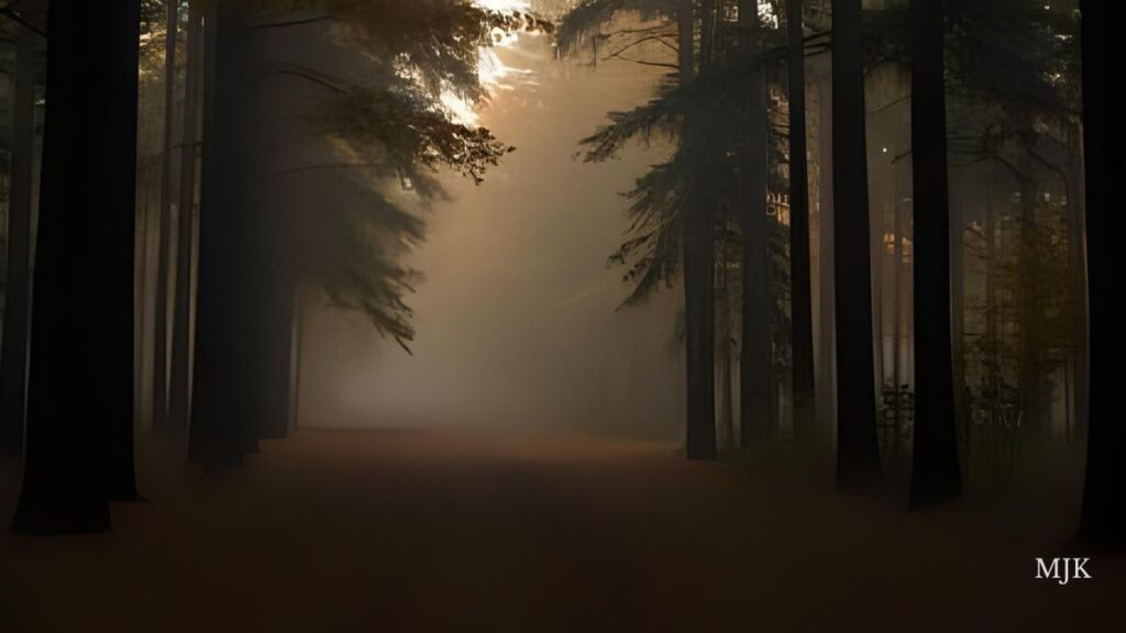 W powietrzu unosi się chłód i dym – mieszanka zapachu ziemi, wilgotnych mchów i drewna, które dopiero co zajęło się ogniem.