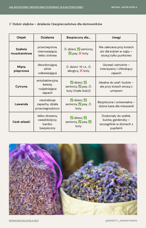 listę bezpiecznych olejków i zasad ich stosowania,
